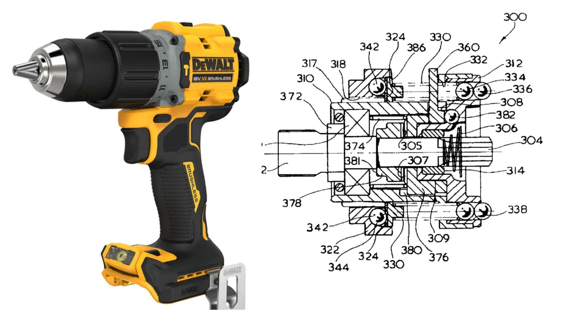 8 patent families including the core hammer + clutch patents that redefined cordless drills for 20+ years.