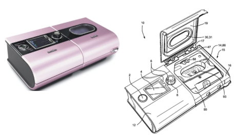 ~19 patent families covering CPAP humidifiers, spill-proof water tubs, water-level sensing, alarm systems, and flow-generator docking – inside millions of S8, S9, AirSense 10/11 units treating sleep apnea globally.